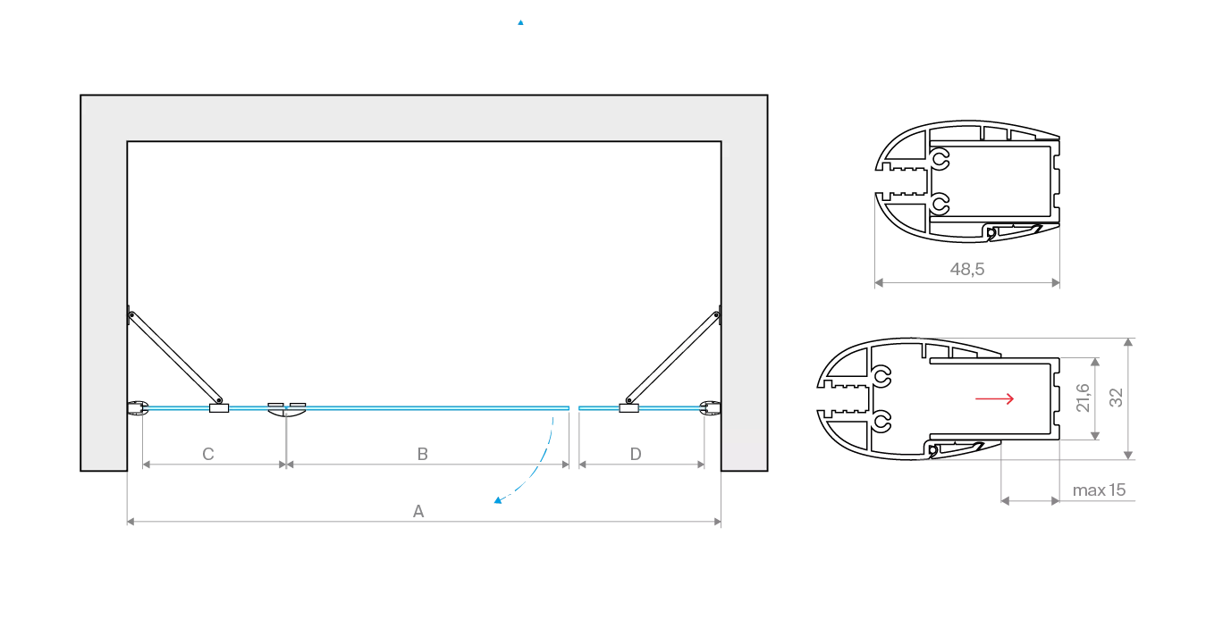 Распашная душевая дверь в душевой проем Vegas-Glass AFP-F LUX Интернет-магазин душевых ограждений Vegas-Glass – большой выбор душевых дверей AFP-F LUX любого размера, сторонности, различный цвет стекла и профиля.