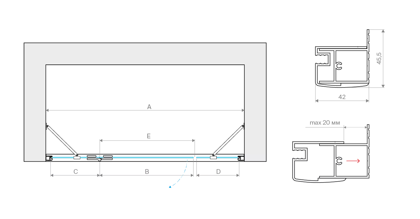 • Особенности модели: Защитное покрытие, Варианты стекол, Цвета профилей, Доступен нестандарт, Гарантия 2 года, Закалённое стекло 6 мм, Можно монтировать на пол, Высота, Петли с функцией подъёма