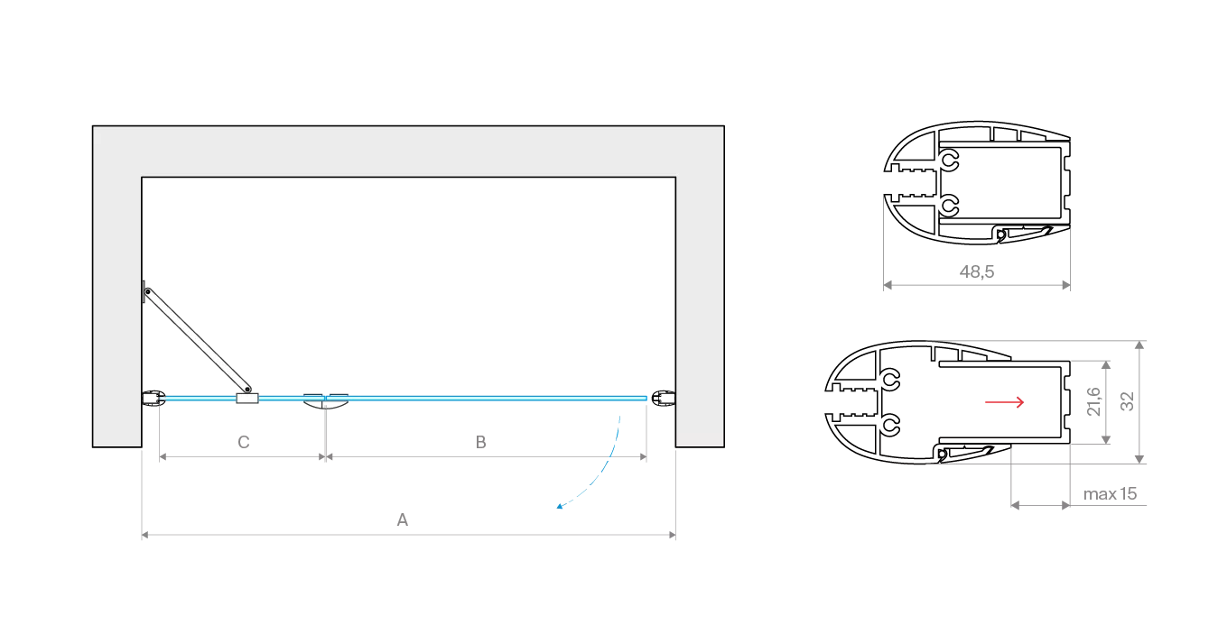 • Особенности модели: Варианты стекол, Цвета профилей, Доступен нестандарт, Гарантия 2 года, Закалённое стекло 6 мм, Можно монтировать на пол, Высота, Петли с функцией подъёма