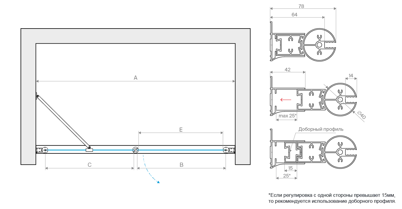 • Особенности модели: Защитное покрытие, Варианты стекол, Цвета профилей, Доступен нестандарт, Гарантия 2 года, Закалённое стекло 6 мм, Можно монтировать на пол, Высота, Добор профиля, Ширина