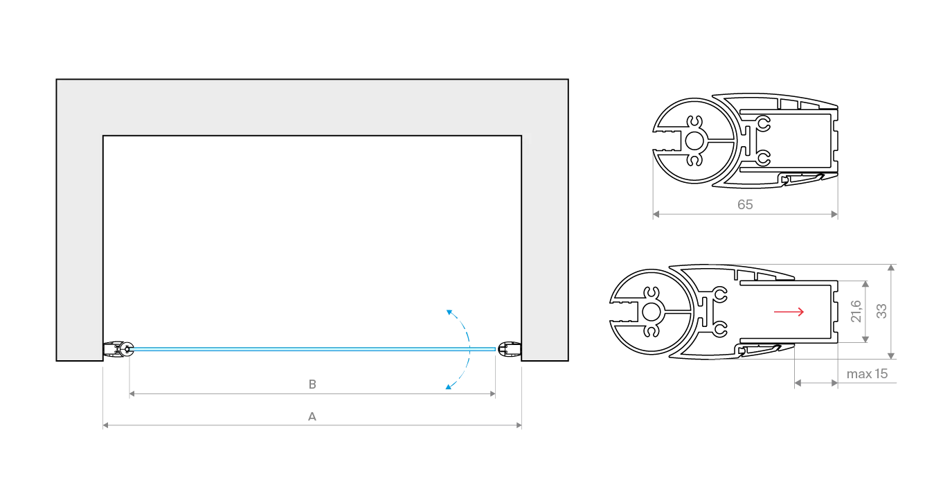 Распашная душевая дверь в нишу Vegas-Glass EP LUX Интернет-магазин душевых ограждений Vegas-Glass – большой выбор душевых дверей EP LUX любого размера, сторонности, различный цвет стекла и профиля.
