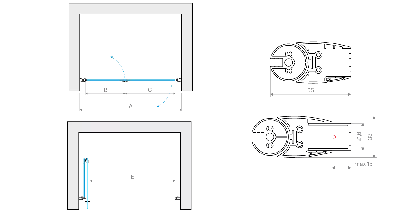 Складная душевая дверь в нишу Vegas-Glass GPS LUX Интернет-магазин душевых ограждений Vegas-Glass – большой выбор душевых дверей GPS LUX любого размера, сторонности, различный цвет стекла и профиля.