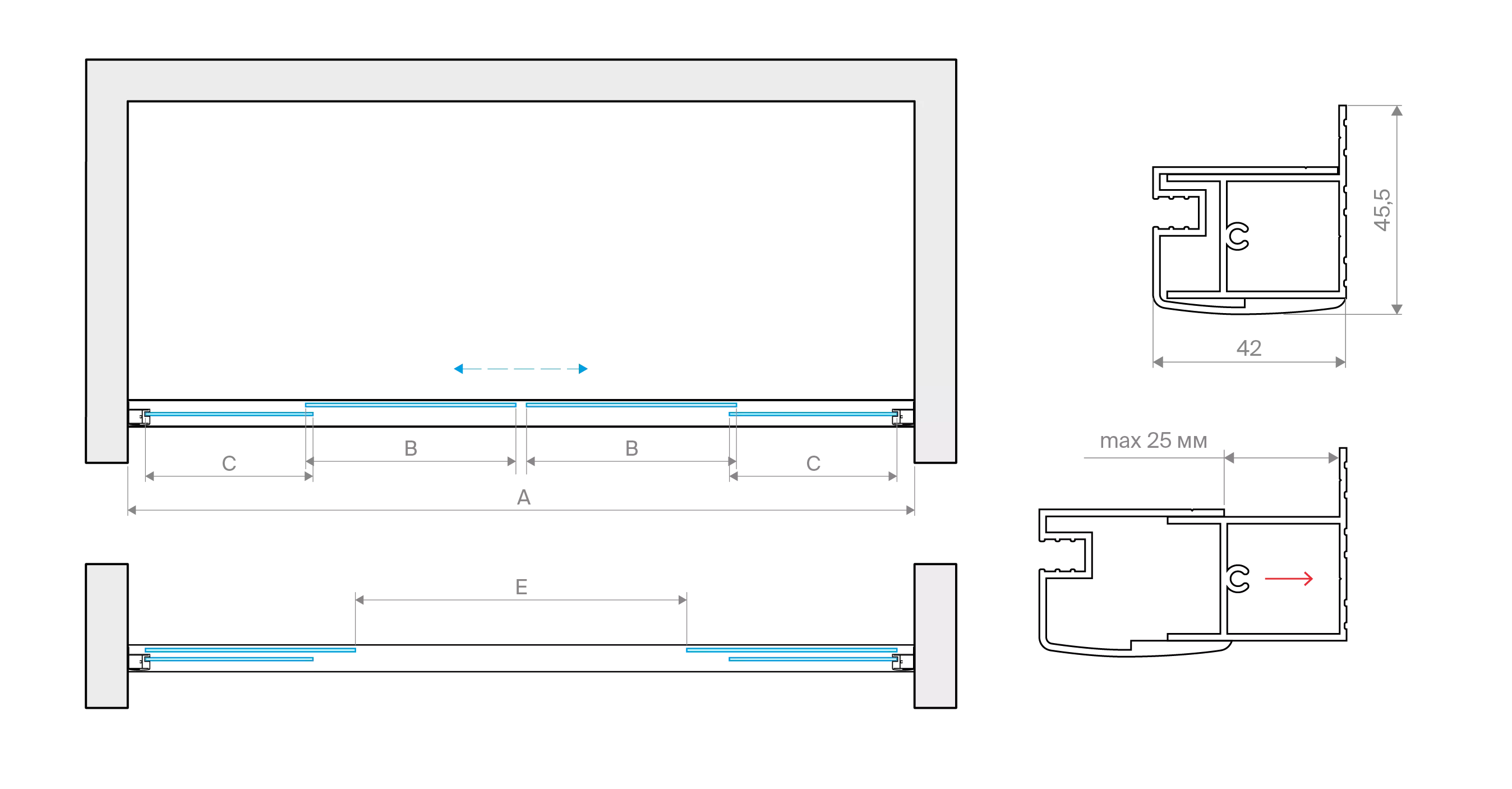 • Особенности модели: Защитное покрытие, Варианты стекол, Цвета профилей, Доступен нестандарт, Гарантия 2 года, Закалённое стекло 6 мм, Можно монтировать на пол, Высота