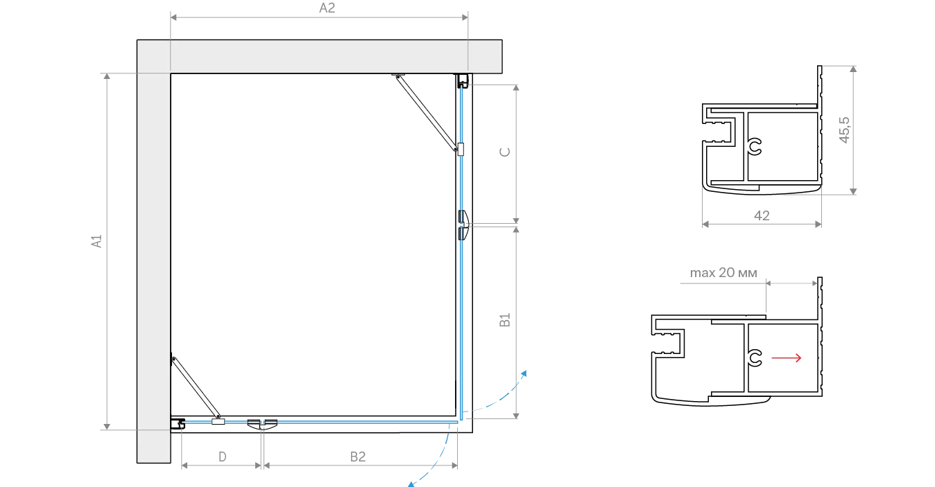 • Особенности модели: Защитное покрытие, Варианты стекол, Цвета профилей, Доступен нестандарт, Гарантия 2 года, Закалённое стекло 6 мм, Можно монтировать на пол, Высота, Петли с функцией подъёма