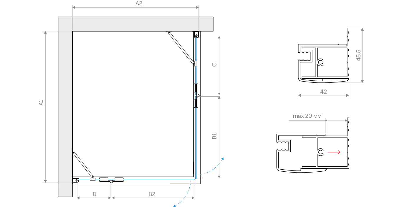 • Конструкция дверей: Распашная