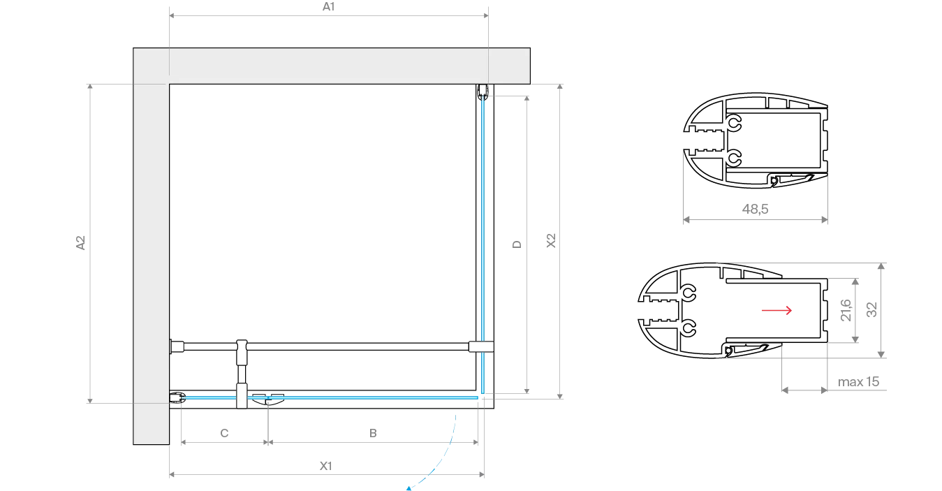 • Особенности модели: Варианты стекол, Цвета профилей, Доступен нестандарт, Гарантия 2 года, Закалённое стекло 6 мм, Можно монтировать на пол, Высота, Петли с функцией подъёма