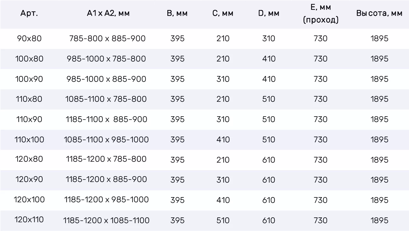 • Особенности модели: Варианты стекол, Цвета профилей, Доступен нестандарт, Гарантия 2 года, Закалённое стекло 6 мм, Можно монтировать на пол, Высота, Петли с функцией подъёма