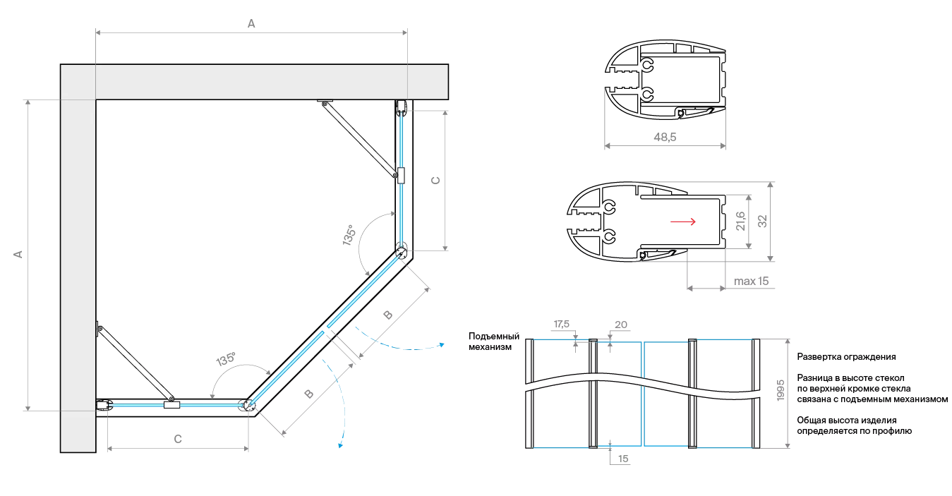 Душевой уголок Vegas-Glass EFA-Pen LUX с распашной дверью по низкой цене. Интернет-магазин душевых ограждений Vegas-Glass – большой выбор пентагональных угловых ограждении EFA-Pen LUX с распашной дверью любого размера, цвета стекла и профиля.