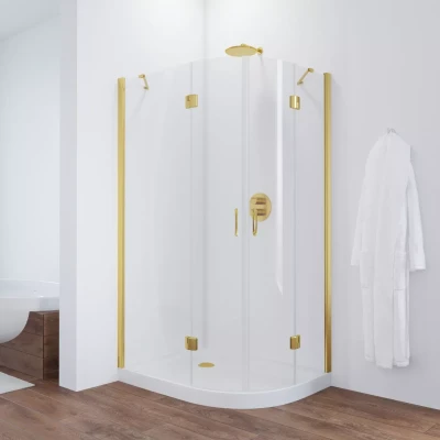 Угловые душевые ограждения с распашными дверями AFS-F NOVO 100x90 золото матовое