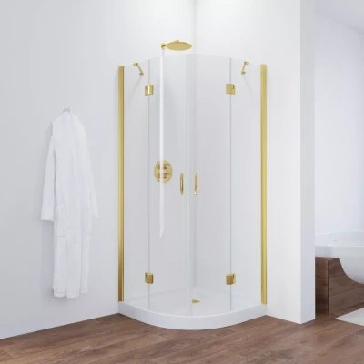 Угловые душевые ограждения с распашными дверями AFS NOVO 80x80 золото глянцевое