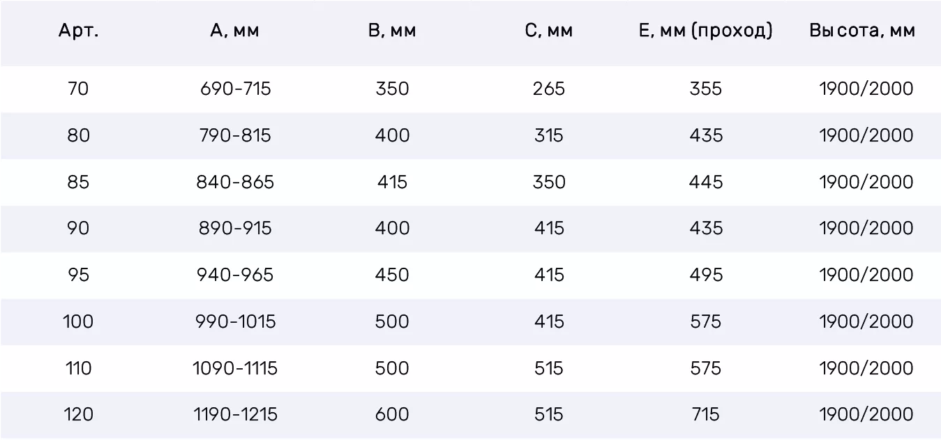 • Особенности модели: Варианты стекол, Цвета профилей, Доступен нестандарт, Двойные подшипниковые ролики, Гарантия 2 года, Закалённое стекло 6 мм, Можно монтировать на пол, Высота